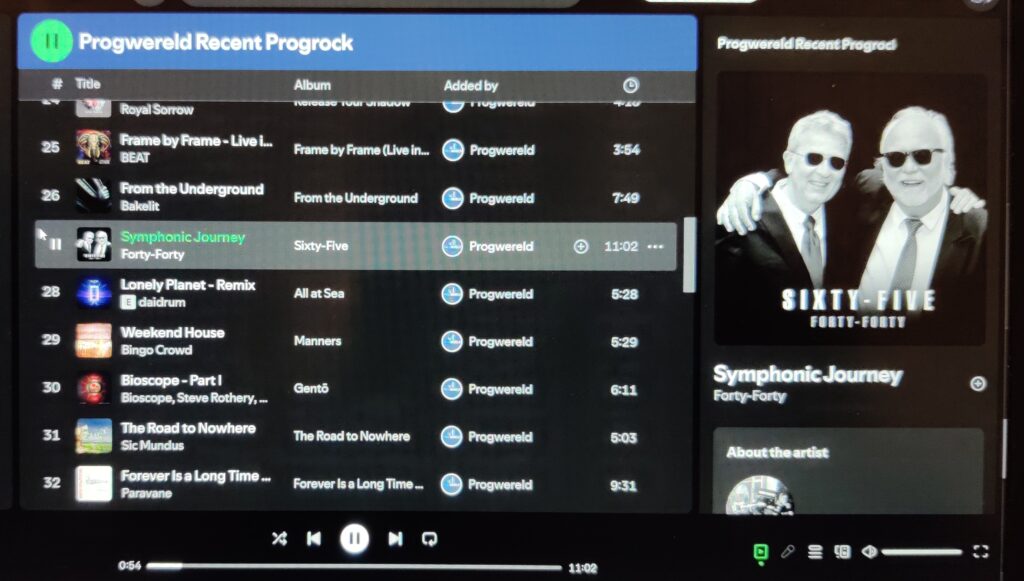 “Symphonic Journey” the last track on our Sixty-Five album was put on the Progwereld Recent Progrock playlist on Spotify. You can listen to the playlist HERE.